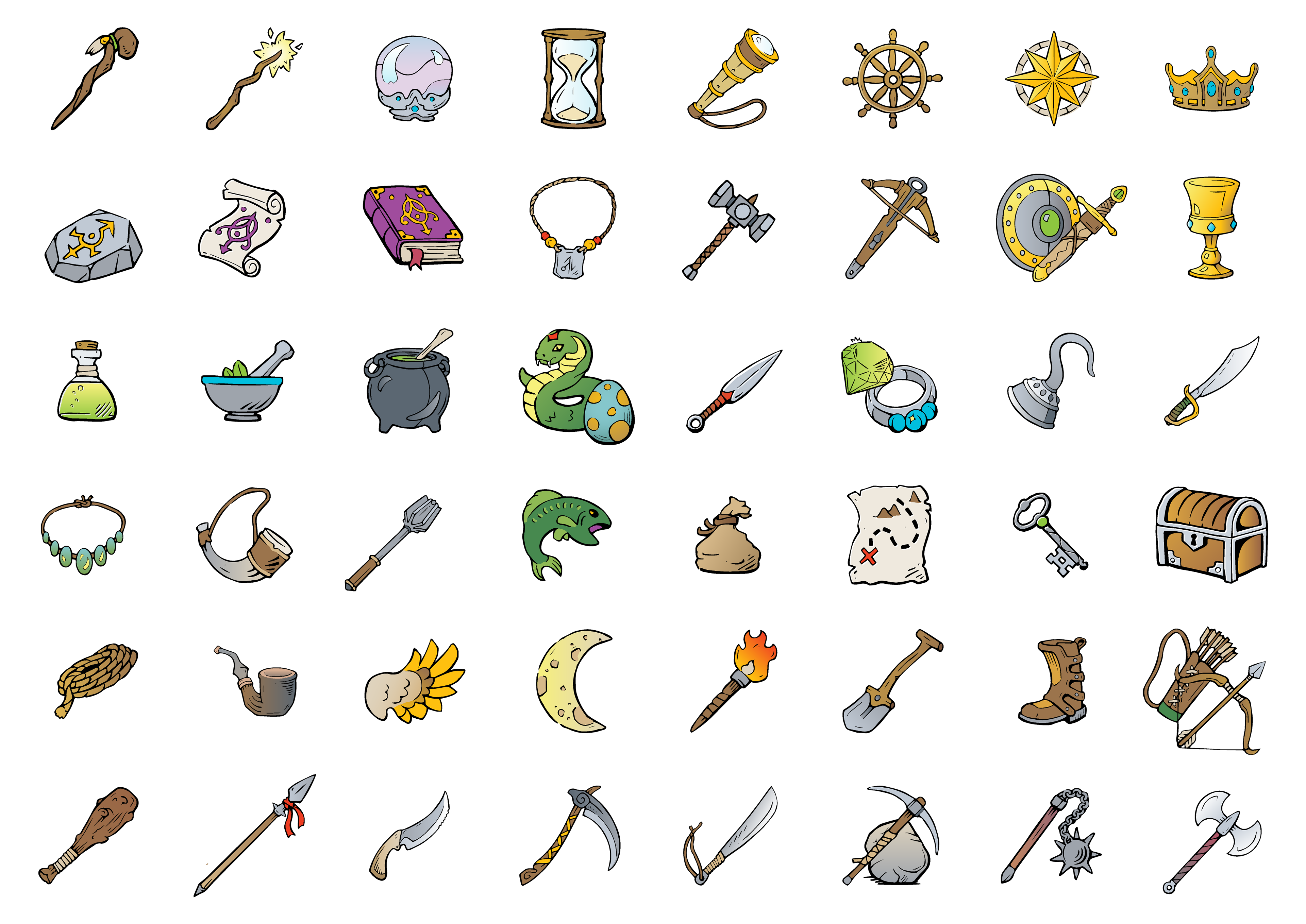 2015 [Vector Art]. Set of 48 fantasy icons designed for a board game project.