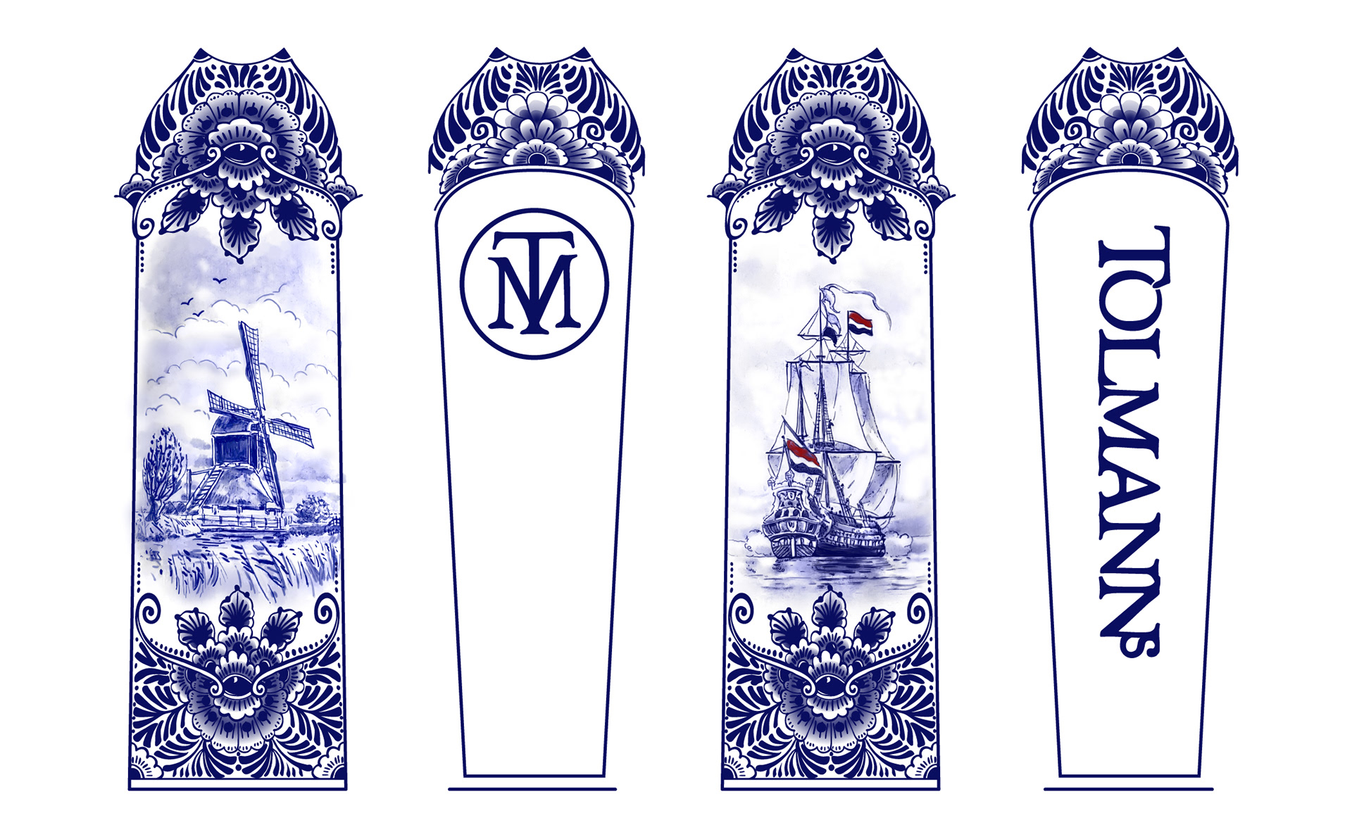 Recreation of a vintage Tolmann's bottle from photo reference only. Art flattened onto template to be later applied three dimensional bottle surface. Original techniques and art for producing the bottle were no longer available. A combination of vector and raster art.